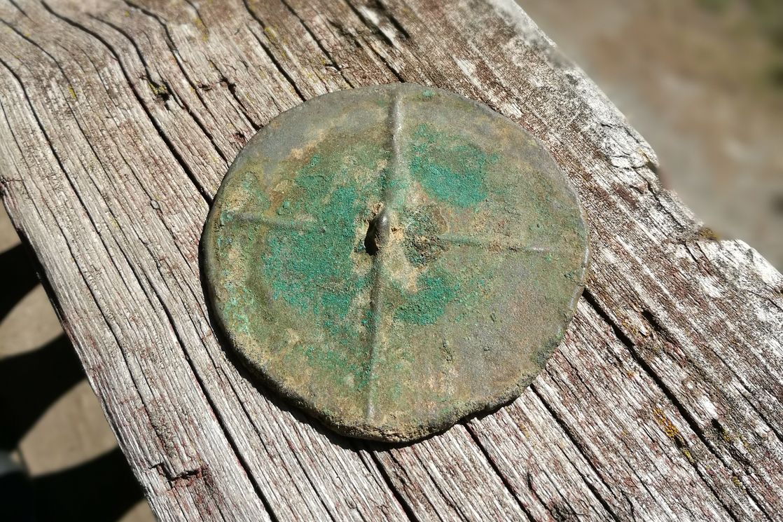 Мы не планировали раскапывать погребения, но именно их нашли и снаружи храма, и внутри него. В сумме мы «собрали» примерно 15 индивидов, но это неполные скелеты: в одних могилах не оказалось черепов, в других кости лежат не в анатомическом порядке. Мужские погребения были полностью без инвентаря, но мы нашли кое-что в женских: серебряный браслет на руке у женщины, бронзовое зеркало (судя по типологии, XI века) и бусинки от шапочки у девочки.
